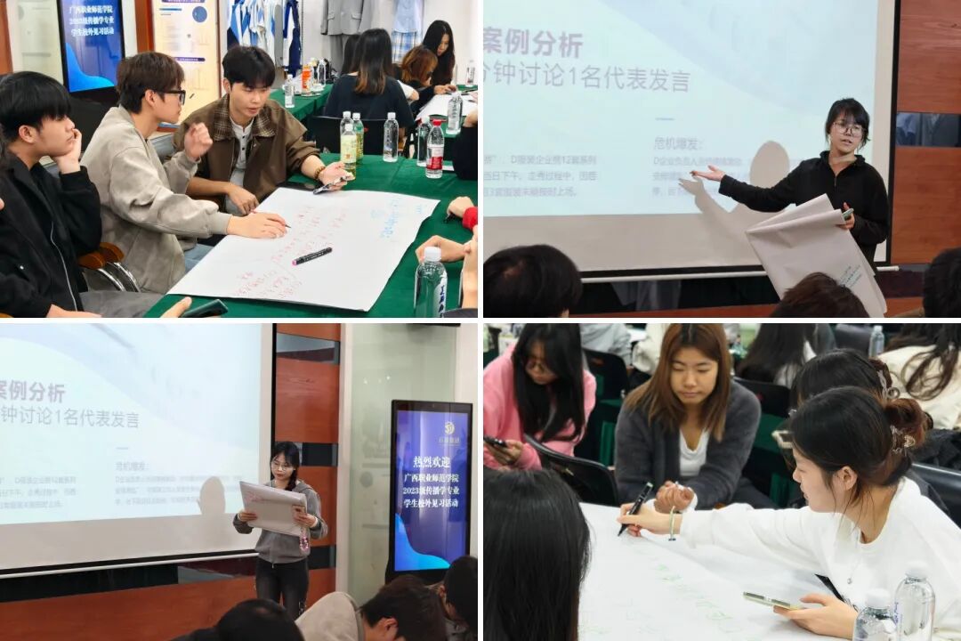 為增強(qiáng)見習(xí)活動(dòng)的互動(dòng)性,各小組圍繞企業(yè)提供的真實(shí)傳播案例展開討論。之后由各小組代表上臺進(jìn)行匯報(bào)發(fā)言。這一環(huán)節(jié)鍛煉了學(xué)生的分析表達(dá)與團(tuán)隊(duì)協(xié)作能力。